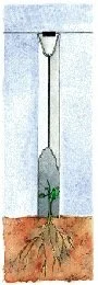 No stake required. GroGuard Vineguards are secure and wind-tunnel tested. An extra 35mm length is provided to push the guard into the soil, and a plastic top clip to attach the guard to the wire.